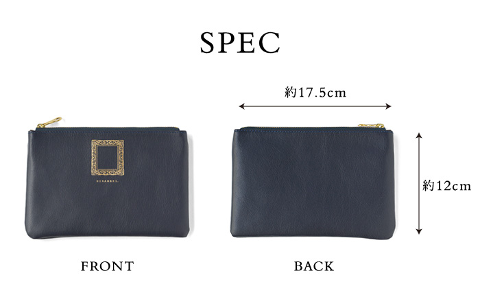 ノーブルな箔押しフレームの、高級感漂うレザーポーチ。 オリジナルフレームの中には蝶や猫など、生き物たちがひっそりと 隠れています。使い勝手のいいサイズ感で、 メイクポーチやステーショナリーケースなど 様々な用途でご使用いただけます。
