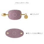 ・アイテム / マジェステ(ヘアアクセサリー) ・シリーズ / アートフラグメント ・サイズ / サイズ / H:約3cm W:約8cm D:約2.5cm ・重さ / 約14g ・素材 / 牛革、真鍮 ・生産国 / 日本 ・機能 / シリコンキャップ式
