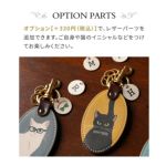 オプションパーツ【+330円(税込)】を追加すると、レザーパーツを追加できます。ご自身や猫のイニシャルなどをつけてお楽しみください。
