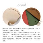 beigeは、牛革に何のお化粧もしていない素肌の状態である、ナチュラルな「ヌメ革」を使用しています。その他のカラーは、イタリアのトスカーナ地方において、職人技と手作業による伝統製法で作った希少性の高いイタリアンレザーを使用しています。(ITALPEL社/Tucson)どちらもご使用の時間と共に色艶が増し、風格のある経年変化をお楽しみいただけます。