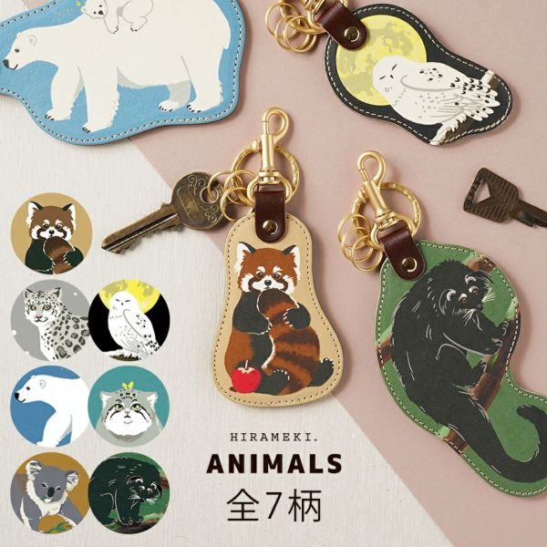 HIRAMEKI. ANIMALSの多種多様な動物たちをかたどった、バッグチャームにもなるアートレザーのキーホルダー。お気に入りの動物を見つけて、一緒にお出かけを楽しもう!