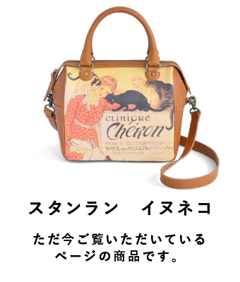 スタンランは、大のネコ好きの画家として知られており、ネコをテーマにした作品がトレードマーク。 スイス生まれだが、生涯のほとんどをフランスで過ごした。パリのオペラ座通りにあったシェロン獣医院の広告ポスターを、デザインに起用。 赤色のワンピースを着た女の子が描かれた、「ミルク」の柄より少し落ち着いたイメージで、猫だけでなく、犬も数匹一緒に描かれているのが特徴。 年齢を気にせず、贈り物にもお勧めです。贈った相手を、やさしい気持ちにさせるデザインです。