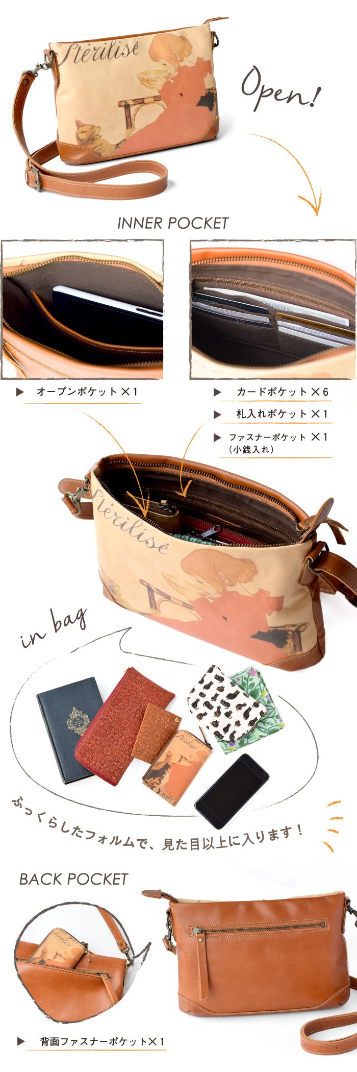 背面ポケット:1個(H13×W17cm)