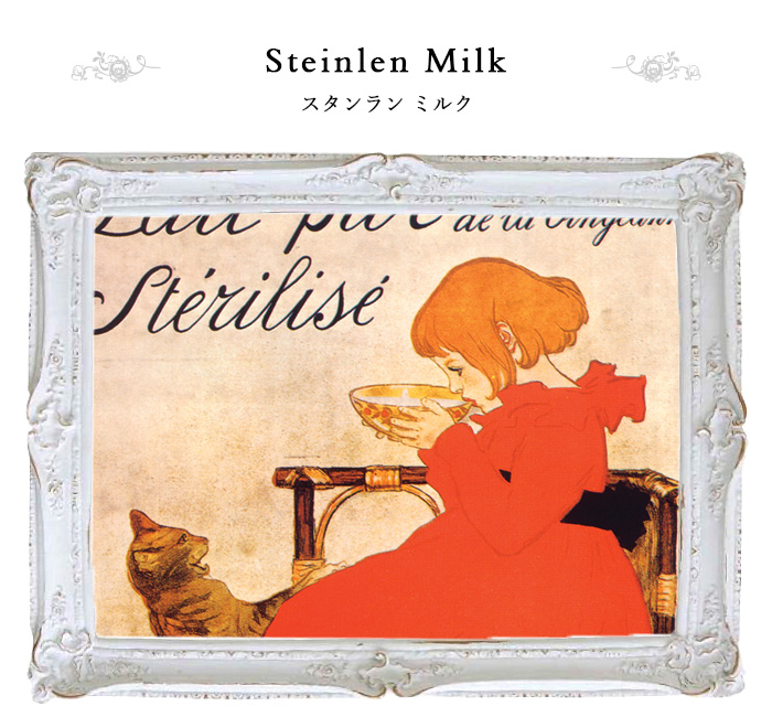 デザイン人気No.1! スタンランは、大のネコ好きの画家として知られており、 ネコをテーマにした作品がトレードマーク。 スイス生まれだが、生涯のほとんどをフランスで過ごした。 牛乳販売会社の広告ポスターで赤い服を着た女の子がミルクを飲んでおり、 3匹の猫が、それを欲しそうにおねだりしている姿が、とても愛らしい作品。 男性にも女性にも優しい癒しのデザインで、HIRAMEKI.の中でも一番人気。