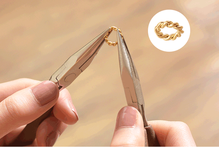 ※手で丸カンを開閉すると指先を負傷する恐れがございますので、丸カンの開閉にはペンチ(ヤットコ)のご使用を推奨しています。丸カンを開閉する際は、左右をペンチ(ヤットコ)で挟み、前後もしくは上下に軽くずらすように開閉します。左右に開閉するとカンの締まりが悪くなったり、形が崩れる場合がございます。