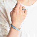 ・こちらのバングルは厳選された天然皮革を用い、染色加工を施し製造されていますが、天然皮革の性質上色落ち、染みの可能性があります。雨・汗等水分には細心のご注意をお願いいたします。もし水分が付着した場合は、すぐに乾いた柔らかい布でお拭き取り下さいませ。