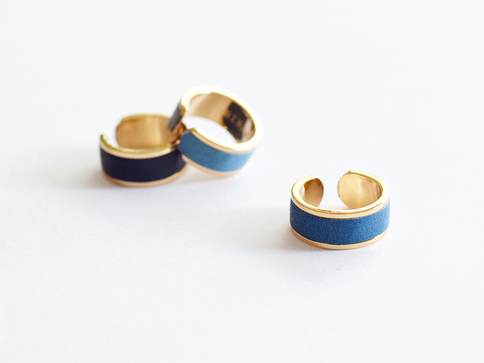 ・こちらのリングは厳選された天然皮革を用い、染色加工を施し製造されていますが、天然皮革の性質上色落ち、染みの可能性があります。雨・汗等水分には細心のご注意をお願いいたします。もし水分が付着した場合は、すぐに乾いた柔らかい布でお拭き取り下さいませ。