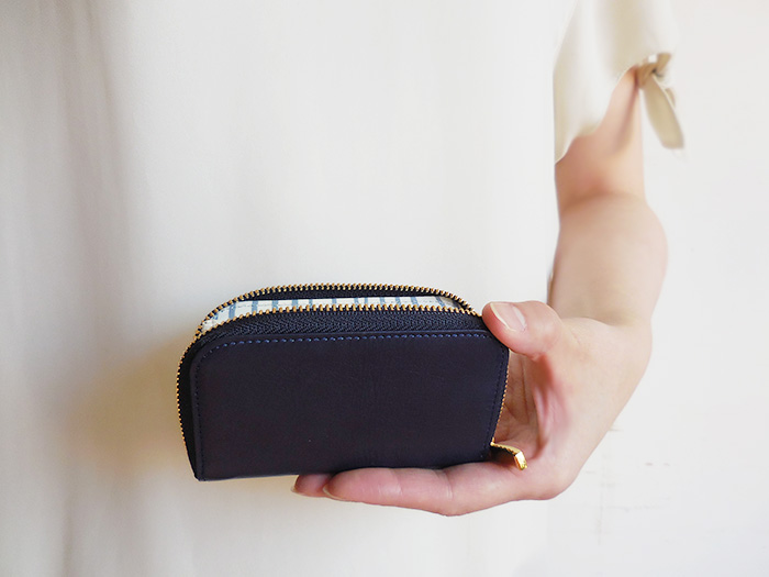 ◆本藍染めのスクモレザーは、職人さんの手によって染められている為、ひとつひとつ色味に差がございます。手染色ならではの味となっておりますので、革の風合いとしてお楽しみください。