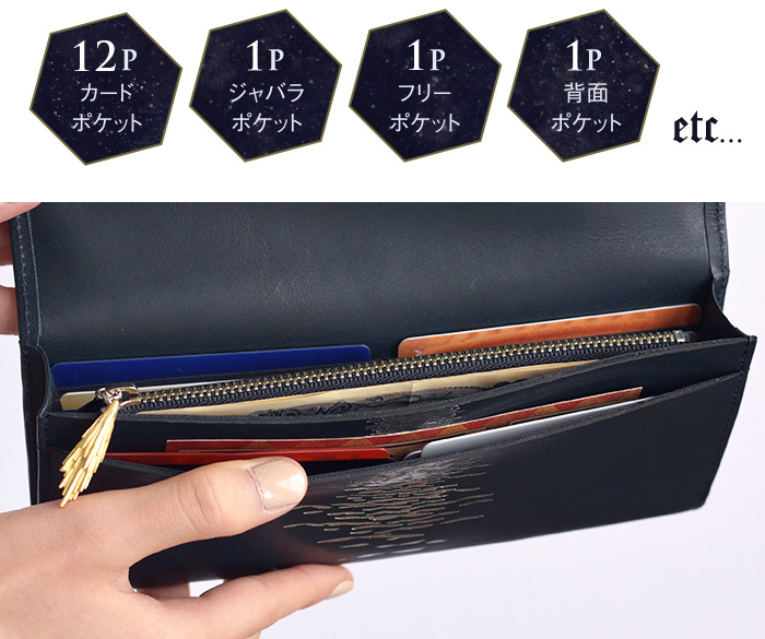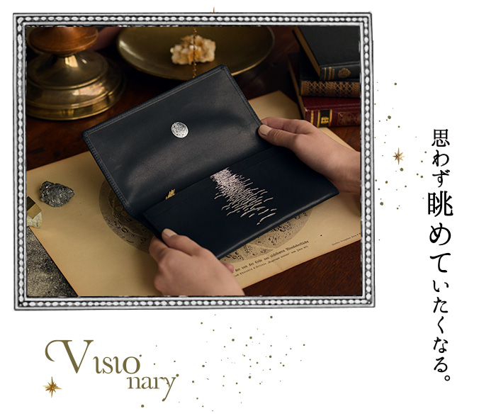 神秘的で美しい挿絵のある、天文古書との出会いから インスピレーションを得てデザインされた、スリムタイプの長財布です。