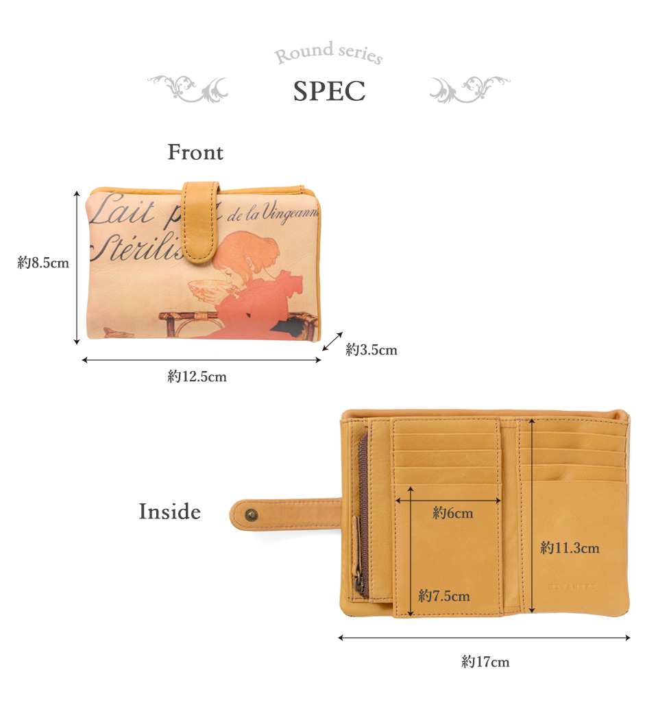 HIRAMEKI.オリジナルの『ART LEATHER』は、牛革に直接デザインを施すため、革本来の質感を損なうことなく経年変化を楽しめます。 ラウンドシリーズでは、その「ART LEATHER」に”上質なやわらかさ”を加え、ずっと触れていたくなる様な質感に仕上げました。