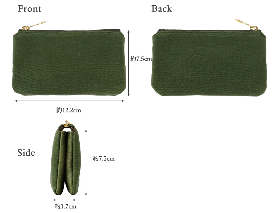 2つのポーチを一つに合わせたこのお財布は、内側に3つの仕分け部屋があり、キーケースやカードケースとしても、マルチにお使いいただけます。革表面にシボがあるサメ革ならではの特別な経年変化も、ぜひお手元でお楽しみください。