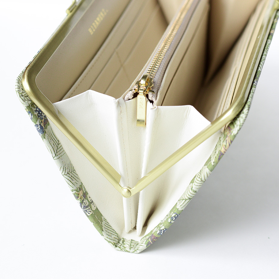 ガマグチの良いところは、口金をひねるだけの簡単な動作ひとつで、楽に開閉ができること。お会計もスムーズに慌てることなく振舞うことができます。