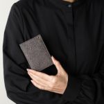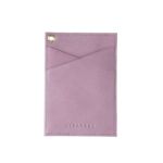 2つのカードスロットを備えており、斜めにカットされたスリットデザインで取り出しもスムーズ。ハトメ穴には、別売りのレザーストラップを使ってバッグにつないだり、お好みのチャームをアクセントに付けてアレンジを楽しめます。※内側にはスエード調の手触りの良い生地を使用。色は表のカラーに合わせてコーディネイトしています。