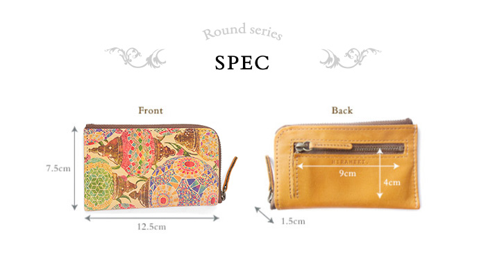 HIRAMEKI.オリジナルの『ART LEATHER』は、牛革に直接デザインを施すため、革本来の質感を損なうことなく経年変化を楽しめます。 ラウンドシリーズでは、その「ART LEATHER」に”上質なやわらかさ”を加え、ずっと触れていたくなる様な質感に仕上がりました。