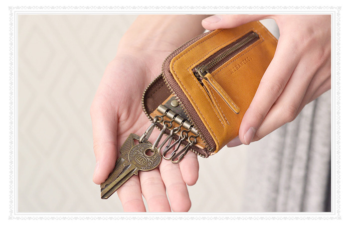 ◆こちらのレザーキーケースは、厳選された天然皮革を用い、染色加工を施し製造されてますが、性質上色落ち、水染みができる可能性がございます。雨、汗等水分には細心のご注意をお願いいたします。もし水分が付着した場合は、すぐに乾いた柔らかい布でお拭き取り下さいませ。