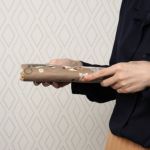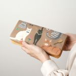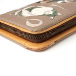 上質なヌメ革に、独自の染色技術でアートデザインを施したHIRAMEKI.のアートレザーを使用しています。ラウンドシリーズは、革や縫製で、手に持った時のやわらかさや、ずっと触れていたくなる質感にこだわってお作りしています。