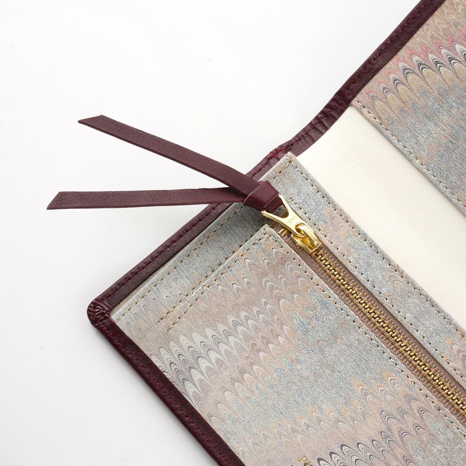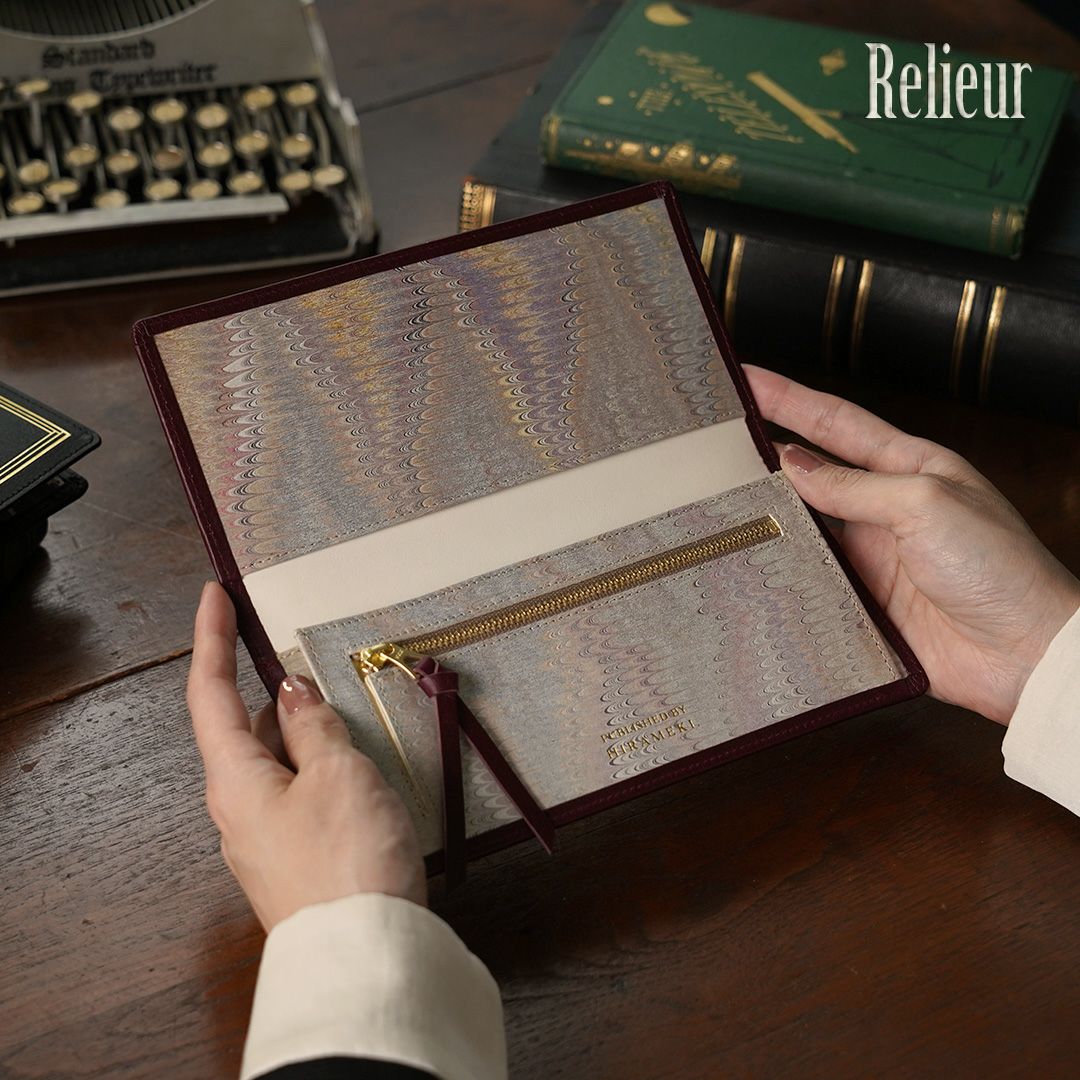 装丁された本の表紙を開くと見返しには、職人が作る芸術性の高いマーブル紙が物語の世界へ誘います。