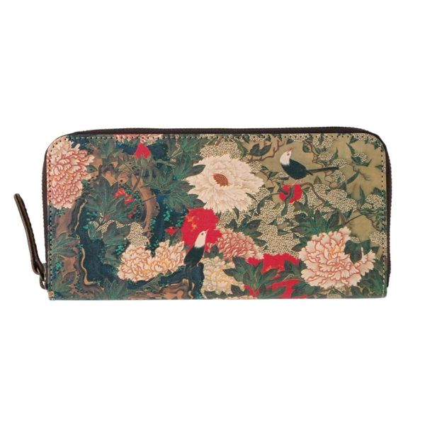 5. アートヌメレザー|ミニラウンドファスナー長財布【牡丹 伊藤若冲】
