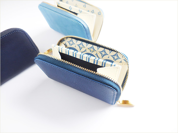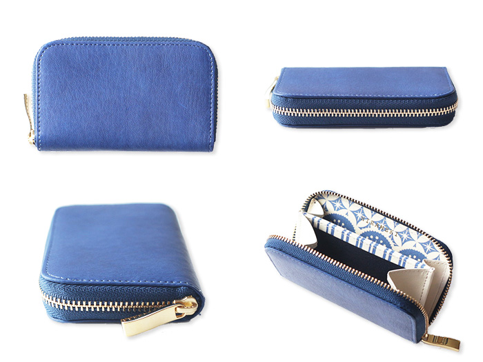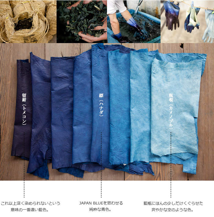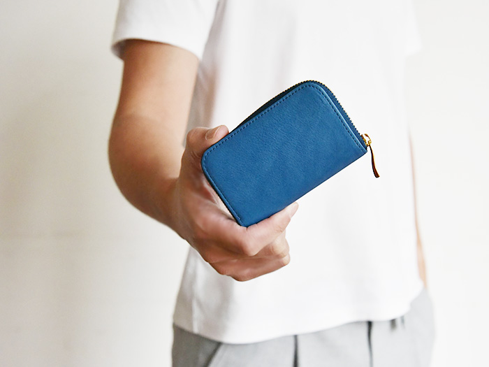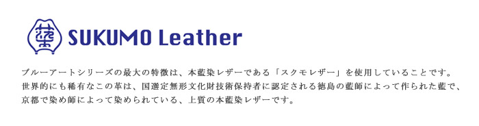 ◆本藍染めのスクモレザーは、職人さんの手によって染められている為、ひとつひとつ色味に差がございます。手染色ならではの味となっておりますので、革の風合いとしてお楽しみください。