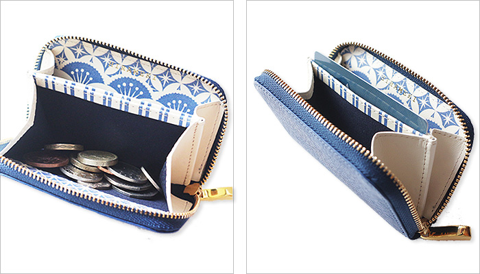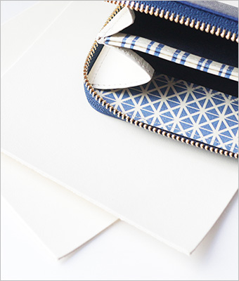 ファスナーを開くと広がる、白と青のコントラストが華やかなアートの世界。