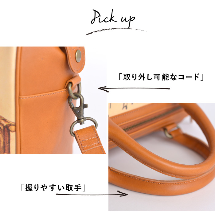 斜め掛け・肩掛け・手持ちの3way仕様。斜め掛け用のコードは