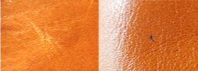 ・革の素材感を活かすため、表面に防傷加工を施しておりません。その為、製造工程中や保管の際の薄い擦り痕やテカリが付くことがございます。これらは使用するにつれ、自然と馴染んでまいりますので、ご安心ください。
