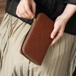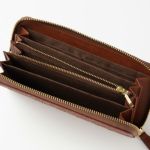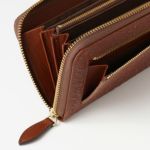 ウィリアム・モリスの装飾的なデザインが美しい、ラウンドファスナータイプの長財布。使うほどに味わい深く育つ牛革に、特注の金属版で立体模様を施した、趣あるシリーズです。