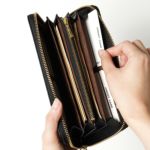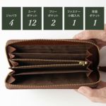 大きく広がる4つのジャバラに12のカードポケットを備えた、仕分けしやすく、大容量の長財布。通帳もおさまるサイズ感で、収納力抜群です。