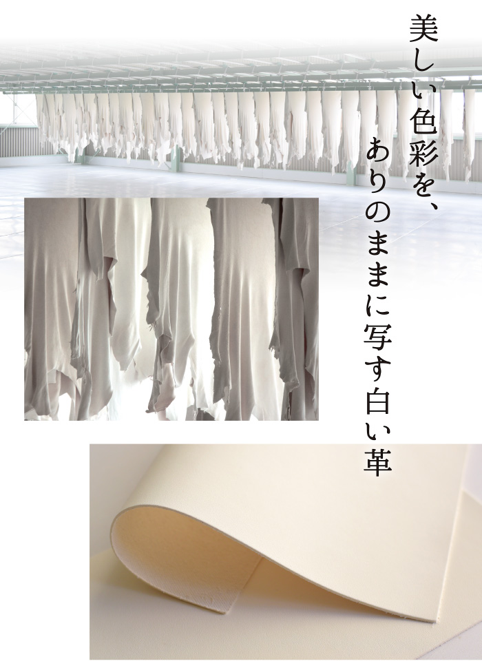 アートを施す白革は、肌理の細かいキップスキン(仔牛の革)を