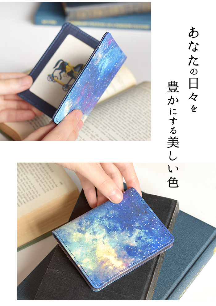 女性の手でも持ちやすい、スリムな二つ折りタイプのパスケース。