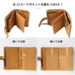 小柄な二つ折り財布のフォルムに、お札や小銭、カードが長財布並みにたくさん収納できます。