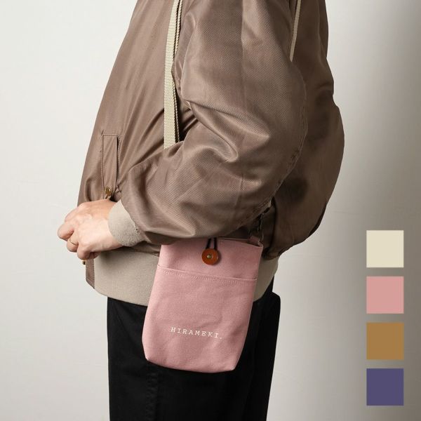 ちょっと無骨で愛嬌のあるインダストリアルなデザインのHIRAMEKI.ロゴ入りキャンバスミニポシェットです。スマホをはじめとした日常のマストアイテムをミニマムに持ち歩くのにちょうど良いサイズ感。ウエストバッグとしても使える2WAY仕様で立ち仕事の方のお仕事ツールとしても活躍します。