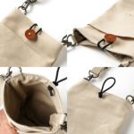 ・帆布、牛革ともに天然素材の性質上、色移り・色落ち・水染の可能性があります。もし水分が付着した場合は、すぐに乾いた柔らかい布でお拭き取りください。