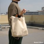 ・キャンバス / ショルダートートバッグ ・サイズ(重さ)/ 高さ:約31cm 幅:約38cm 厚み:約12cm(約225g) コード:約73~133cm(約79g) ・機能 / 開閉マグネット、内ポケット ・素材 / 倉敷帆布(綿)、牛革 ・生産国 / 日本