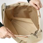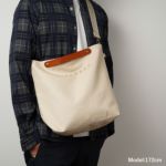 ・帆布、牛革ともに天然素材の性質上、色移り・色落ち・水染の可能性があります。もし水分が付着した場合は、すぐに乾いた柔らかい布でお拭き取りください。