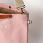 外側には便利なDカン付きで、パスケースやお気に入りのチャームなどを自由に取り付けることができます。また、キャンバス生地なので、ブローチやバッジでのアレンジも簡単。軽くて日常使いだけでなく、イベントやライブにもぴったりです◎