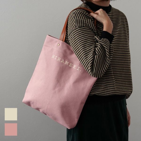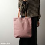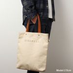 丈夫な倉敷8号帆布を使った、インダストリアルな雰囲気のロゴ入りスリムトート。A4サイズがゆったり入るサイズ感で、ちょっと無骨で愛嬌のある、ユニセックスなデザインが魅力です。持ち手には本牛革を使うこだわりも。季節を問わずオールシーズン活躍します。