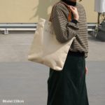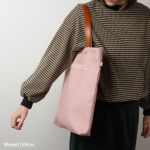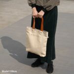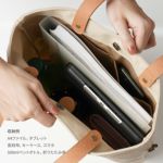 スリムトートにあえて5cmのマチをつけました。これにより、厚みのあるファイルやペットボトルなどを入れた時にも底が安定し、すっきり綺麗に収まってくれます。