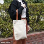 ・キャンバス / スリムトートバッグ ・サイズ(重さ)/ 高さ:約36cm 幅:約34cm 厚み:約5cm(約248g) コード:約46.5cm ・機能 / 開閉マグネット、内ポケット ・素材 / 倉敷帆布(綿)、牛革 ・生産国 / 日本