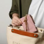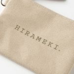 丈夫な倉敷8号帆布を使った、HIRAMEKI.ロゴがワンポイントの小さなポーチ。こちらのSサイズはポケットティッシュがぴったり入るサイズ感で、小さめのバッグにもすっきりと収まります。