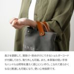 長さを調節して、肩掛け・斜めがけにできるショルダーコードが付属しており、取り外しも可能。また、本革製の短い手持ちハンドルは荷物を重たく感じにくい作り。こなれて柔らかくなると腕通しも可能になり、使い心地抜群です。