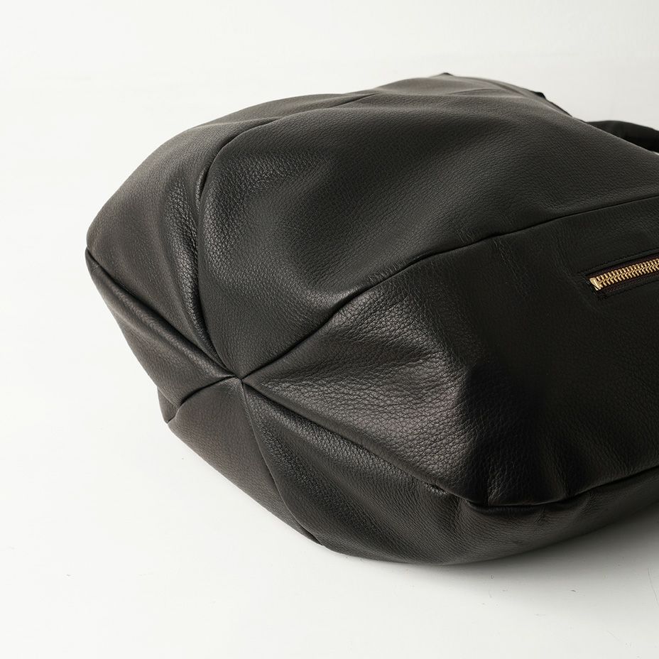 オイルドレザー×染料染の柔軟な手触りは、まるで長く大切に使われたヴィンテージバッグのよう。二度に渡って丁寧に革に油脂を加えた「二加脂仕上げ」による国産牛革を使用しており、使い始めから身体に心地よく馴染み、使うほどに革の繊維の奥から艶が湧き出るような経年変化も魅力です。