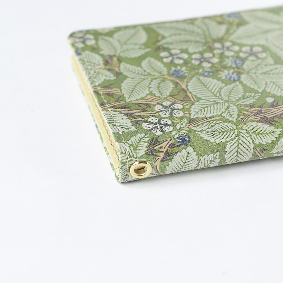 英国のモリス商会に所属していた女性職人ケイト・フォークナーによって描かれた、野性味溢れるキイチゴのデザイン。生け垣をうねりながら登っていく蔦や棘には力強い生命力を、葉や白い花の丸みのあるタッチからは愛らしさや優しさを感じられます。