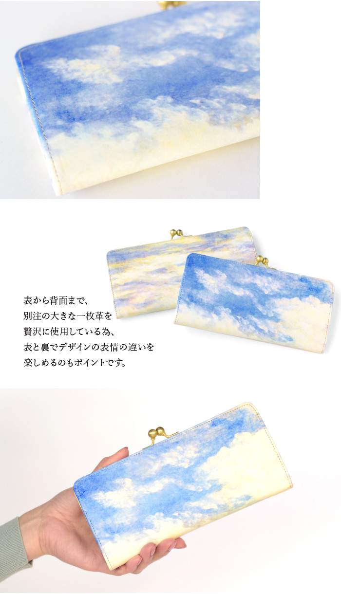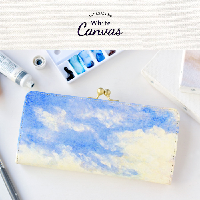 HIRAMEKI.別注の白革を下地としたホワイトキャンバスシリーズは、 本革ならではのサラッとした素肌感を残しながらも、 独自の加工で経年による色合いの変化を極限まで抑えました。 それにより、白革に施したアート本来の美しい色彩を長く保つことができ、 初めて手に取った瞬間のときめきを、より長くお楽しみいただけます。