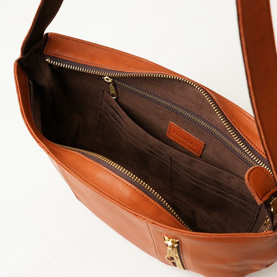 牛革と比べて軽く、しなやかな柔らかさが特長。きめが細かく、しっとりとした手触りが楽しめます。