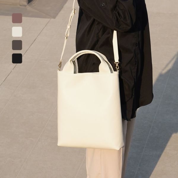A4ファイルや雑誌が入るサイズ感。大きすぎない程良いマチで荷物がきれいにまとまり、小柄な女性が持ってもかさばりません。