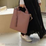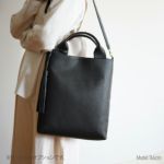 美しいイタリア産のソフトなレザーを使ったトートバッグです。本体胴を2枚の大きな革で仕立てた贅沢な作りで、縫い目の少ないモダンで洗練された雰囲気が特徴。取り外しができるショルダーコード付き。A4ファイルが入るサイズで、オンオフ共に活躍します。華やかな印象を楽しめる共革タッセルはオプションです。