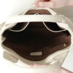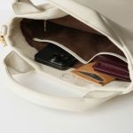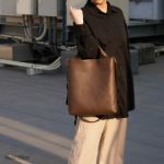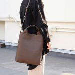 A4ファイルや雑誌が入るサイズ感。大きすぎない程良いマチで荷物がきれいにまとまり、小柄な女性が持ってもかさばりません。