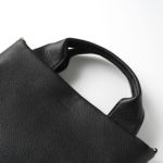 本体は大判の革2枚で贅沢に仕立てました。底とサイドを切り替えなしで仕立てることで、柔らかな質感と洗練された印象が感じられます。