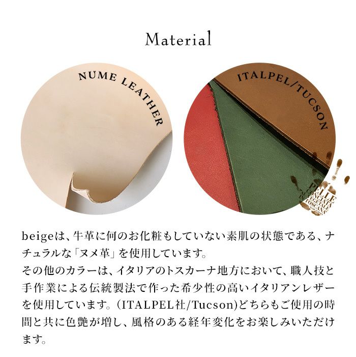 牛革からサメ革などの他にはない希少なレザーまで。個性ある本革素材が揃っています。